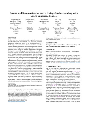 Keywords: | Outage Understanding, Large Language Model, Cloud Systems |