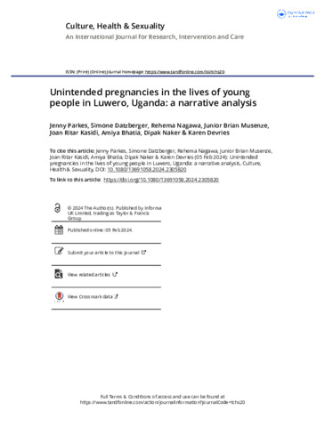 | Title: | Unintended pregnancies in the lives of young people in Luwero, Uganda: a narrative analysis |