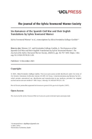 | Title: | Six Romances of the Spanish Civil War and their English Translations by Sylvia Townsend Warner |