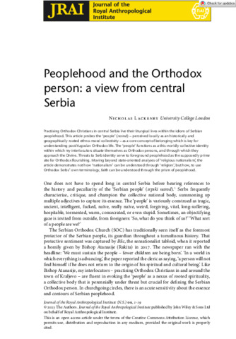 Title: | Peoplehood and the Orthodox person: a view from central Serbia |