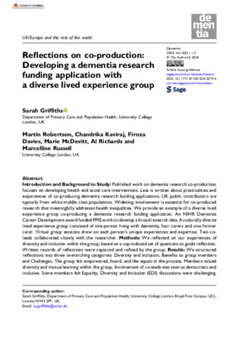 Title: | Reflections on co-production: Developing a dementia research funding application with a diverse lived experience group |