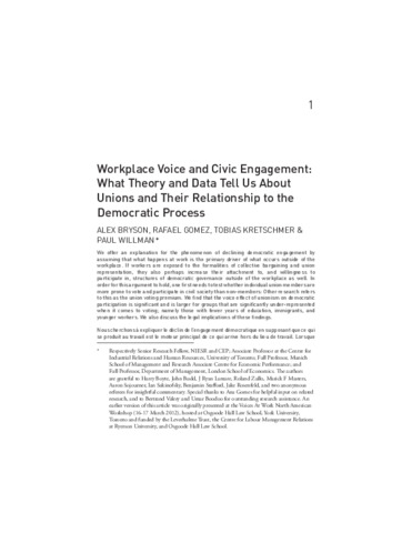 Title: | Workplace Voice and Civic Engagement: What Theory and Data Tell Us About Unions and Their Relationship to the Democratic Process |
