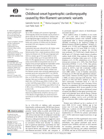 | Title: | Childhood-onset hypertrophic cardiomyopathy caused by thin-filament sarcomeric variants |