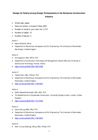 Design for safety among design professionals in the Botswana construction industry.pdf - Accepted Version Download (961kB) | Preview |