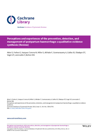 Perceptions and experiences of the prevention, detection, and management of postpartum haemorrhage: a qualitative evidence synthesis.
