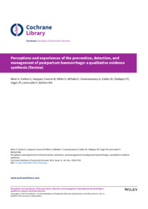 Title: | Perceptions and experiences of the prevention, detection, and management of postpartum haemorrhage: a qualitative evidence synthesis |