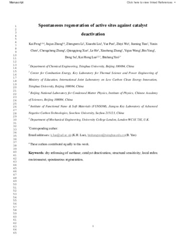 | Title: | Spontaneous regeneration of active sites against catalyst deactivation |