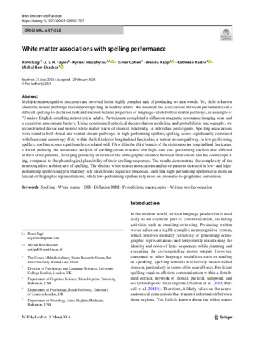 | Keywords: | Spelling, White matter, DTI, Diffusion MRI, Probabilistic tractography, Written word production |