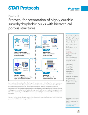 Title: | Protocol for preparation of highly durable superhydrophobic bulks with hierarchical porous structures |