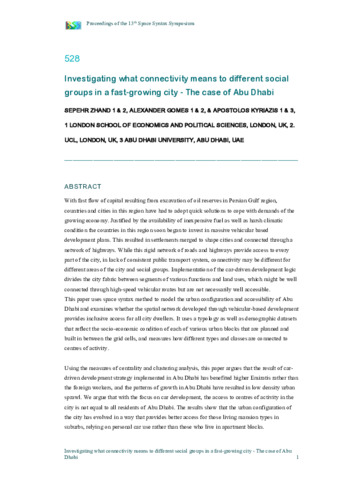 | Title: | Investigating what connectivity means to different social groups in a fast-growing city - The case of Abu Dhabi |