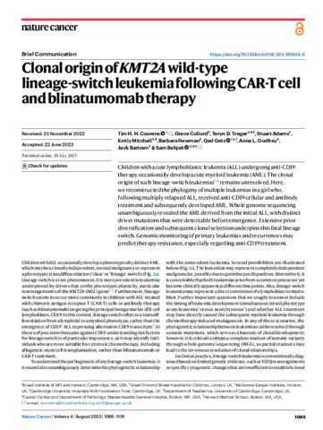 Title: | Clonal origin of KMT2A wild-type lineage-switch leukemia following CAR-T cell and blinatumomab therapy |