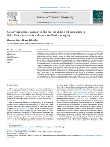 | Title: | Socially sustainable transport in the context of different-sized cities in China:Conceptualisation and operationalisation of equity |