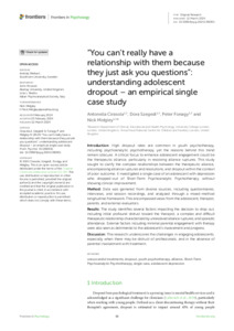 Title: | “You can’t really have a relationship with them because they just ask you questions”: Understanding adolescent dropout - an empirical single case study |