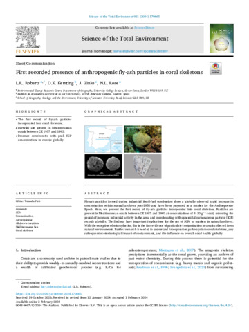 Title: | First recorded presence of anthropogenic fly-ash particles in coral skeletons |