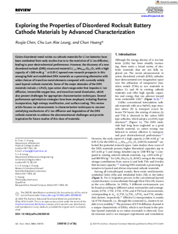 Leung_Exploring the Properties of Disordered Rocksalt Battery Cathode Materials by Advanced Characterization_VoR.pdf - Published Version Download (8MB) | Preview |