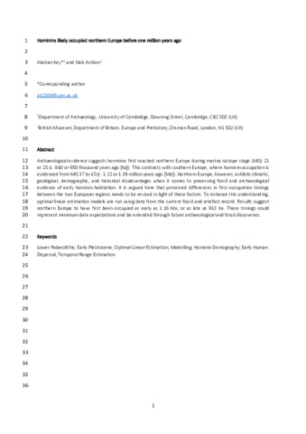 Title: | Hominins likely occupied northern Europe before one million years ago |