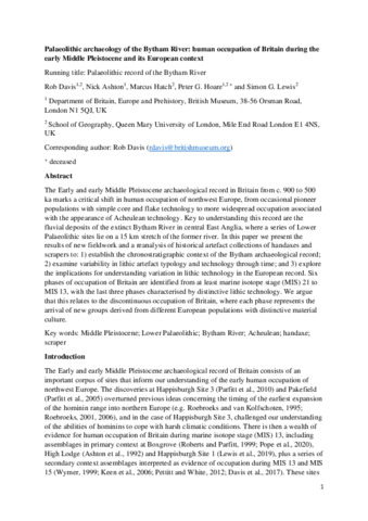 Title: | Palaeolithic archaeology of the Bytham River: human occupation of Britain during the early Middle Pleistocene and its European context |