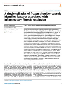 A single cell atlas of frozen shoulder capsule identifies features associated with inflammatory fibrosis resolution.