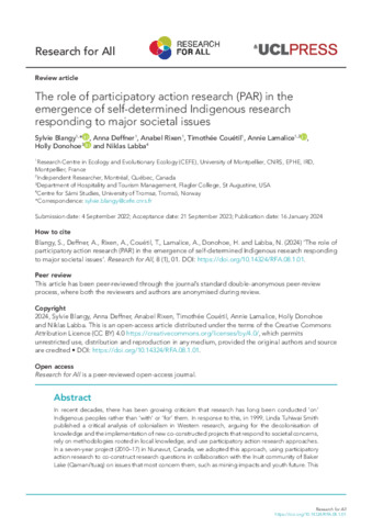 | Title: | The role of participatory action research (PAR) in the emergence of self-determined Indigenous research responding to major societal issues |