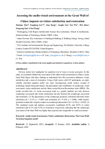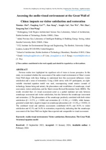 Title: | Assessing the audio-visual environment at the Great Wall of China: Impacts on visitor satisfaction and restoration |