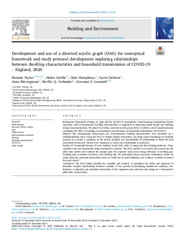 Title: | Development and use of a directed acyclic graph (DAG) for conceptual framework and study protocol development exploring relationships between dwelling characteristics and household transmission of COVID-19 – England, 2020 |