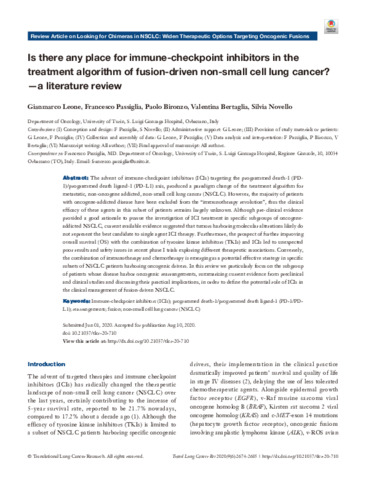 Title: | Is there any place for immune-checkpoint inhibitors in the treatment algorithm of fusion-driven non-small cell lung cancer? -a literature review |