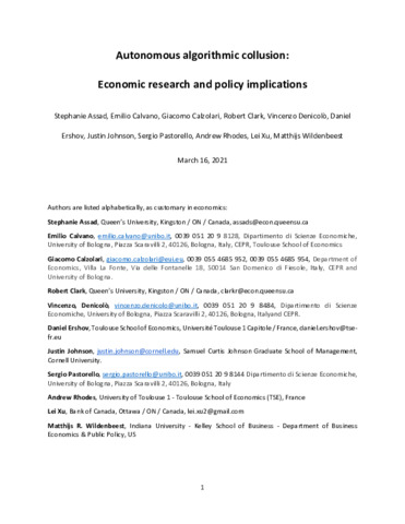 | Title: | Autonomous algorithmic collusion: economic research and policy implications |