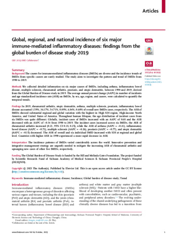 Title: | Global, regional, and national incidence of six major immune-mediated inflammatory diseases: findings from the global burden of disease study 2019 |