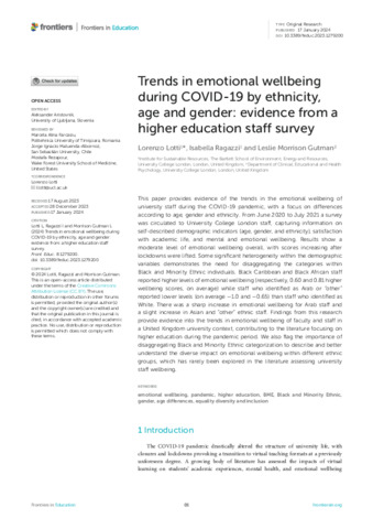 Trends in emotional wellbeing during COVID-19 by ethnicity, age and gender: evidence from a higher education staff survey.