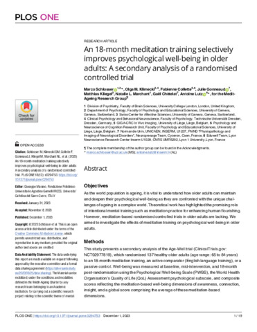 | Title: | An 18-month meditation training selectively improves psychological well-being in older adults: A secondary analysis of a randomised controlled trial |