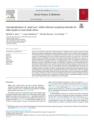 | Title: | Conceptualisations of "good care" within informal caregiving networks for older people in rural South Africa |