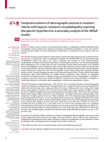 Title: | Temporal evolution of electrographic seizures in newborn infants with hypoxic-ischaemic encephalopathy requiring therapeutic hypothermia: a secondary analysis of the ANSeR studies |