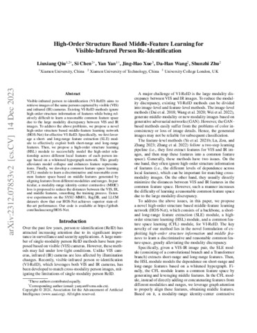 | Title: | High-Order Structure Based Middle-Feature Learning for Visible-Infrared Person Re-Identification |