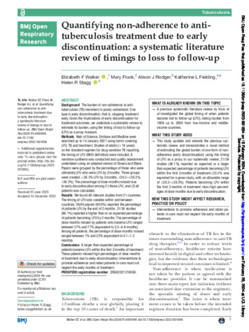 Title: | Quantifying non-adherence to anti-tuberculosis treatment due to early discontinuation: a systematic literature review of timings to loss to follow-up |
