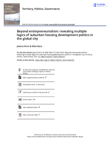 Ferm_ Beyond entrepreneurialism- revealing multiple logics of suburban housing development politics in the global city_AOP.pdf - Published Version Download (1MB) | Preview |