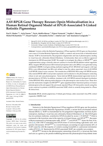 Michaelides_AAV-RPGR Gene Therapy Rescues Opsin Mislocalisation in a Human Retinal Organoid Model of RPGR-Associated X-Linked Retinitis Pigmentosa_VoR.pdf - Published Version Download (20MB) | Preview |