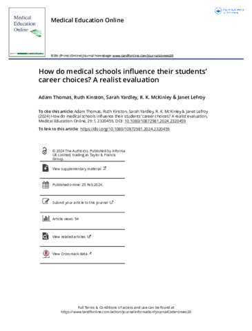 Title: | How do medical schools influence their students' career choices? A realist evaluation |