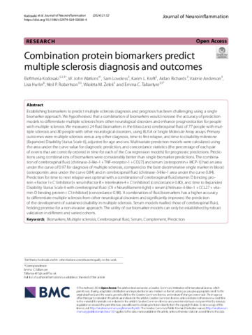 | Title: | Combination protein biomarkers predict multiple sclerosis diagnosis and outcomes |
