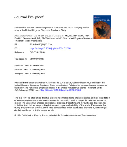 Title: | Relationship between intraocular pressure fluctuation and visual field progression rates in the United Kingdom Glaucoma Treatment Study |