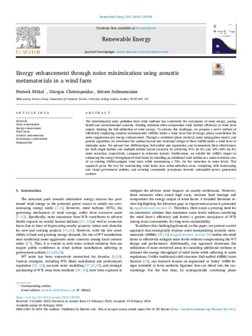 Title: | Energy enhancement through noise minimization using acoustic metamaterials in a wind farm |