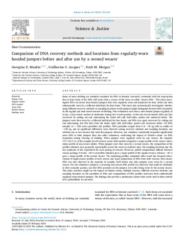 | Title: | Comparison of DNA recovery methods and locations from regularly-worn hooded jumpers before and after use by a second wearer |