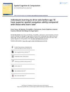 | Title: | Individuals learning to drive solo before age 18 have superior spatial navigation ability compared with those who learn later |