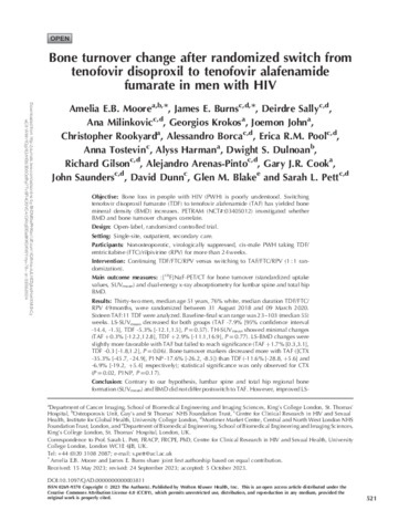 Bone turnover change after randomized switch from tenofovir disoproxil to tenofovir alafenamide fumarate in men with HIV.