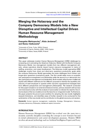 Markopoulos_Merging the Holacracy and the Company Democracy Models into a new disruptive and intellectual capital driven Human Resource Management methodology_VoR.pdf - Published Version Download (752kB) | Preview |