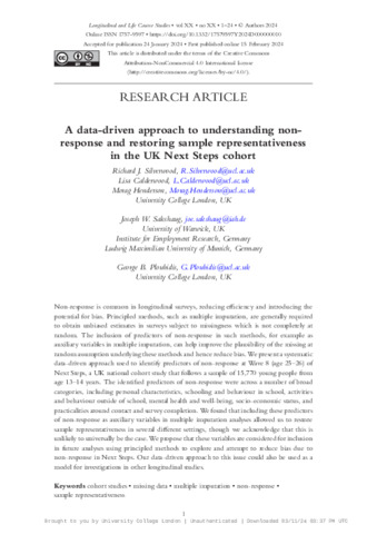 | Title: | A data-driven approach to understanding non-response and restoring sample representativeness in the UK Next Steps cohort |