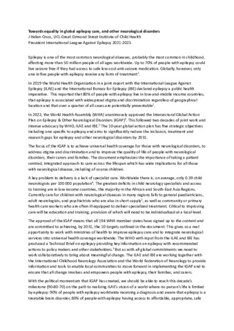 Title: | Towards equality in global epilepsy care and other neurological disorders |