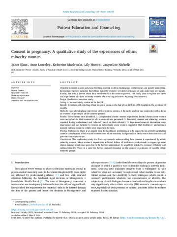 | Title: | Consent in pregnancy: a qualitative study of the experiences of ethnic minority women |