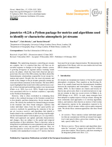 | Title: | jsmetrics v0.2.0: a Python package for metrics and algorithms used to identify or characterise atmospheric jet streams |