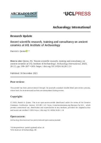 Title: | Recent scientific research, training and consultancy on ancient ceramics at UCL Institute of Archaeology |