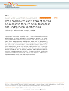 Title: | Rnd3 coordinates early steps of cortical neurogenesis through actin-dependent and -independent mechanisms |